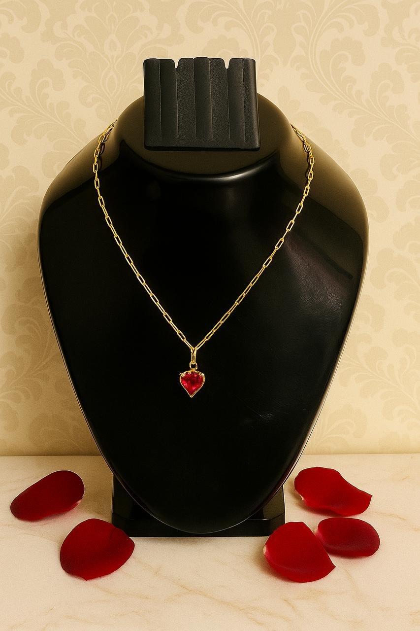 This timeless gold link chain necklace, featuring a dazzling heart-shaped pink stone pendant. Crafted to capture the warmth of love and elegance, this piece is perfect for everyday glam or heartfelt gifting.